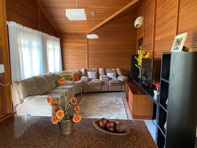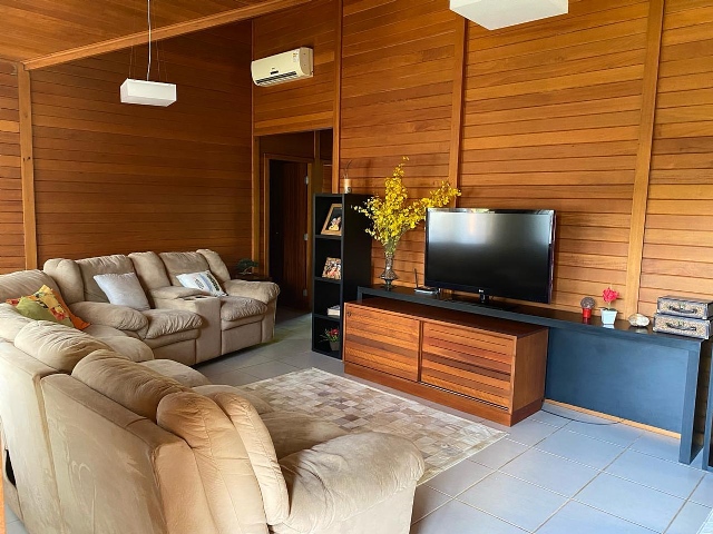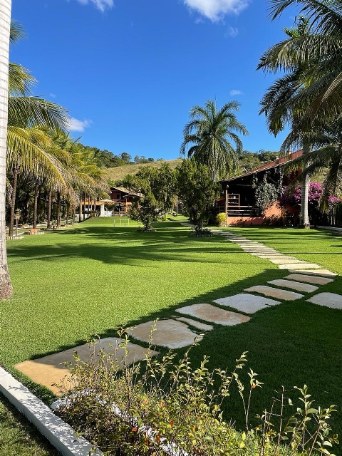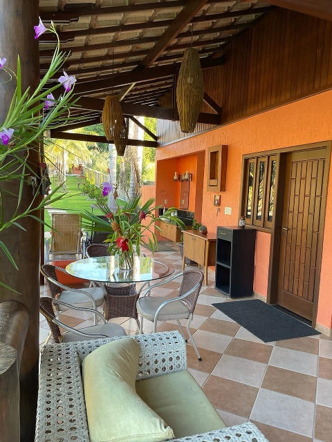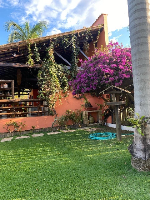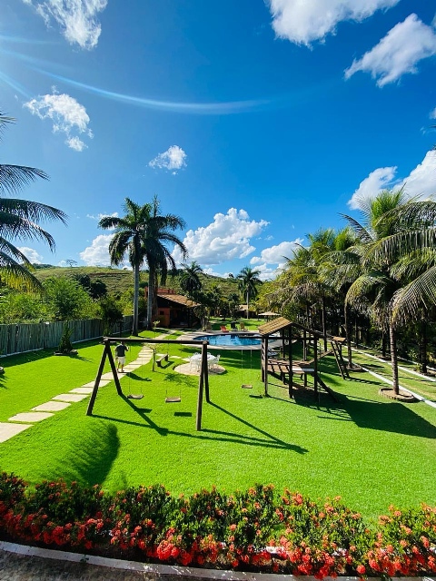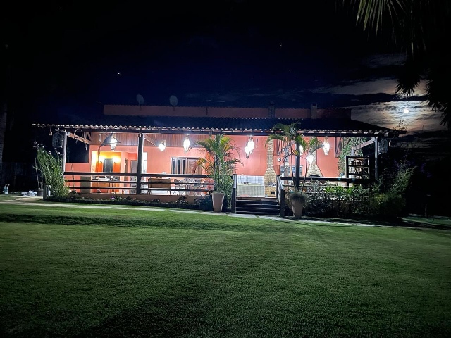 Condomínio tem 3 lagoas Poço de peixe Sauna Campo pomar Horta Galinheiro Casa de madeira 5 quartos sendo 1 suíte (ar condicionado em todos quartos) Área gourmet independente da casa Portaria 24 horas