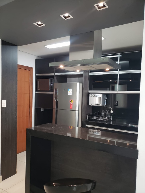 03 Quartos 2 Garagens paralela (Térreo) 2 Elevadores Suíte Grande com closet. Escritório montado Quarto de hóspede Sala ampla Cozinha americana Planejados, Móveis, Cortinas, Luminárias e ar condicionado em todos os ambientes.