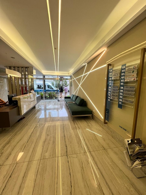 Ambiente aconchegante no 10°andar , fundo com a mata, 40m2. Hall do andar com sala de espera e banheiro para visitantes. Prédio com portaria, dois elevadores, garagem, geração fotovoltaica para condomínio e gerador de energia a diesel automático para cobrir interrupção na rede.